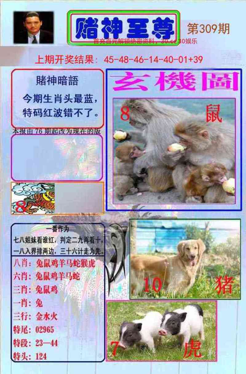 310期:特码暗语/曾道人救世心经/攻特料/六合心经/平码生肖点将