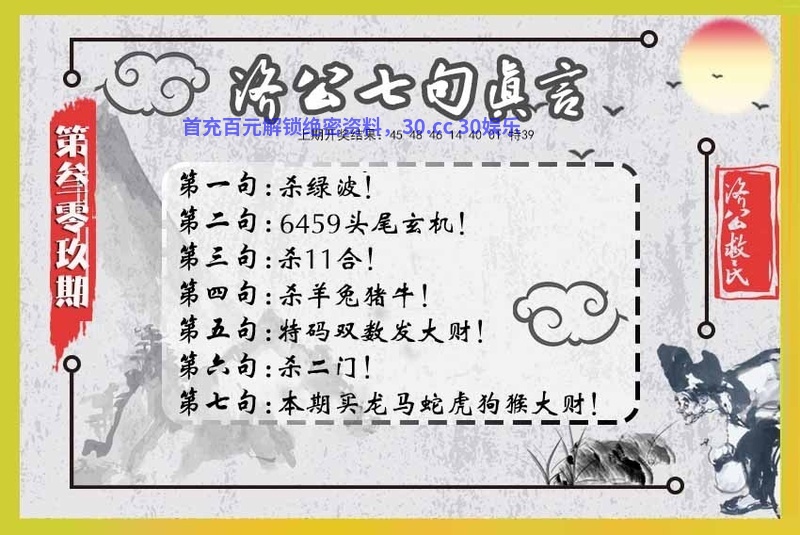 310期:财神奇缘/提供一句解特/特玛诗句/富豪一句平
